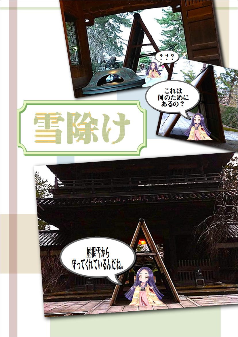 山門に雪除けを設置しました。